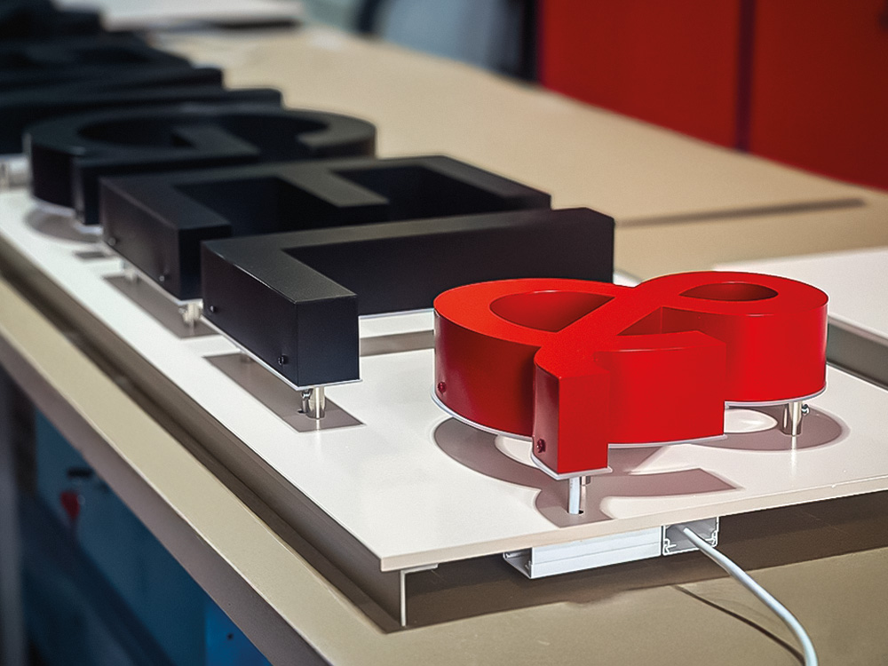 Montagefertig vorbereitete LED-Beschriftung für den Außenbereich