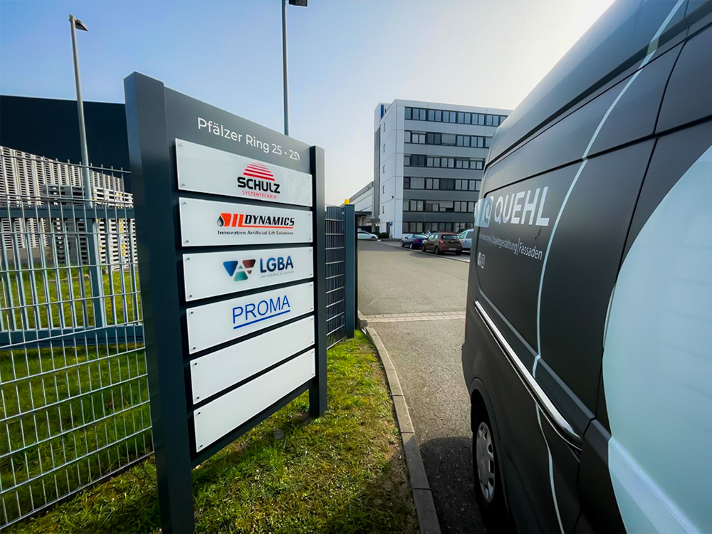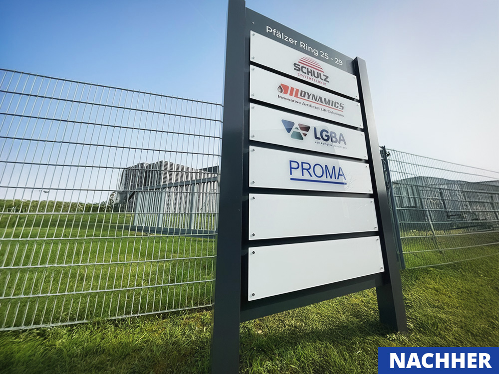 Haus + Co betreut und entwickelt Immobilienprojekte und legt dabei Wert auf eine strukturierte Außenwirkung und eine klare Orientierung für Besucher. Die Pylone übernehmen hierbei eine wichtige Funktion: Sie bündeln die unterschiedlichen Mieter und Einheiten an einem zentralen Punkt und machen diese bereits im Zufahrtsbereich des Industriegebiets gut erfassbar. Durch die Überarbeitung entstand ein ruhiges, aufgeräumtes Erscheinungsbild, das die bestehenden Anlagen funktional ergänzt und gestalterisch aufwertet.