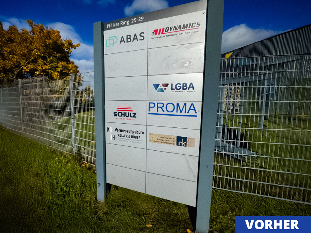 Für die Haus + Co Projektmanagement GmbH haben wir in Hockenheim zwei bestehende Werbepylone überarbeitet und an die aktuellen Anforderungen des Standorts angepasst. Ziel war es, die vorhandene Struktur zu erhalten und gleichzeitig eine klarere, zeitgemäße Beschilderung zu schaffen.